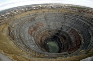 К середине двадцатого века сферы влияния в алмазной индустрии были практически поделены. Главным центром добычи оставались южноафриканские страны и второстепенным - Бразилия. Алмазные копи Индии практически отработаны. В тот момент наша страна серьезной алмазодобывающей державой никак не считалась, хотя в середине XIX века были открыты немногочисленные россыпи алмазов на Урале. Однако на огромной территории нашей страны было множество предпосылок поиска алмазных месторождений, и советские геологи не теряли надежды отыскать месторождения в сибирской Якутии. Первый алмаз был найден в 1949 года в бассейне р. Вилюй, а в августе 1954 года ленинградский геолог Лариса Попугаева открыла первое месторождение коренных алмазов в СССР – трубку «Зарница». Через год отряд Амакинской экспедиции Ю.И. Хабардина обнаружил кимберлитовую трубку “Мир”, а группа геологов под руководством В.Н. Щукина – трубку “Удачная”. В этих совершенно диких и необжитых до того краях, в зоне вечной мерзлоты выросли современные города Мирный и Удачный. Рядом было открыто множество алмазных месторождений – трубки «Айхал», «Комсомольская», «Юбилейная», «Интернациональная» и другие, из которых и в настоящее время компания АЛРОСА производит добычу алмазов. Лидирующее положение на начало 2006 года по добыче алмазов (по стоимости) занимает Ботсвана, второе – Россия.